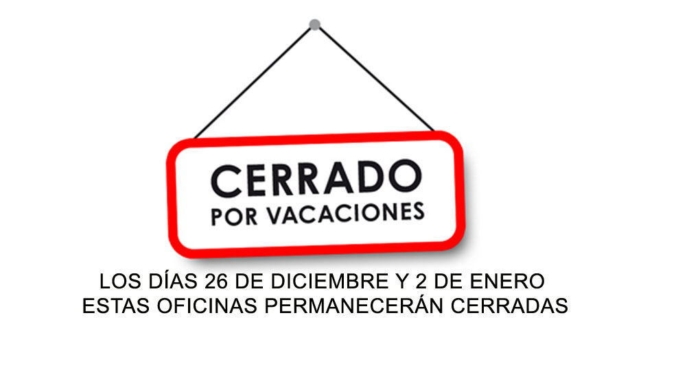 LOS DÍAS 26 DE DICIEMBRE Y 2 DE ENERO ESTAS OFICINAS PERMANECERÁN CERRADAS